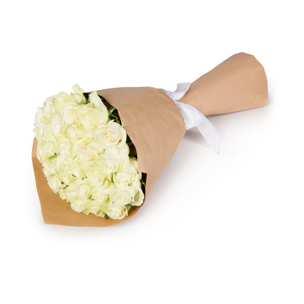 Букет из 35 белых роз в крафте