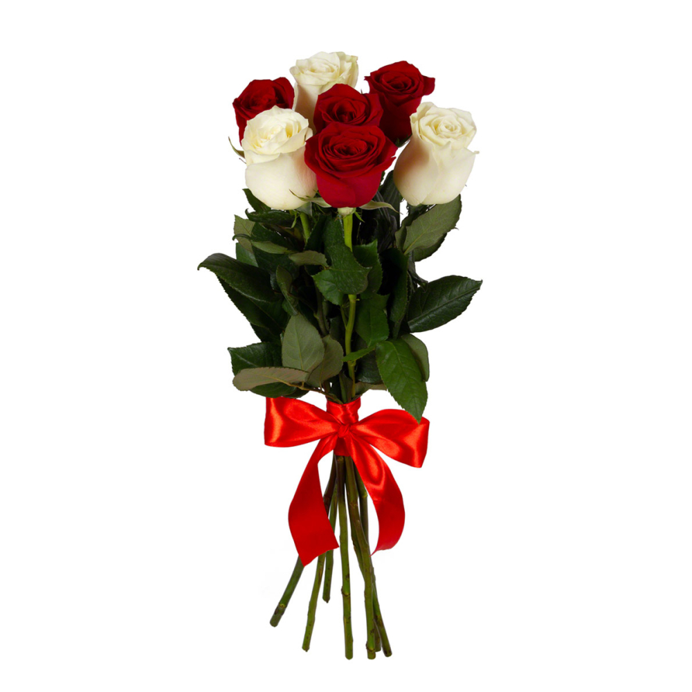 Сочетание красных и белых роз в одном букете создает удивительную гармонию.
